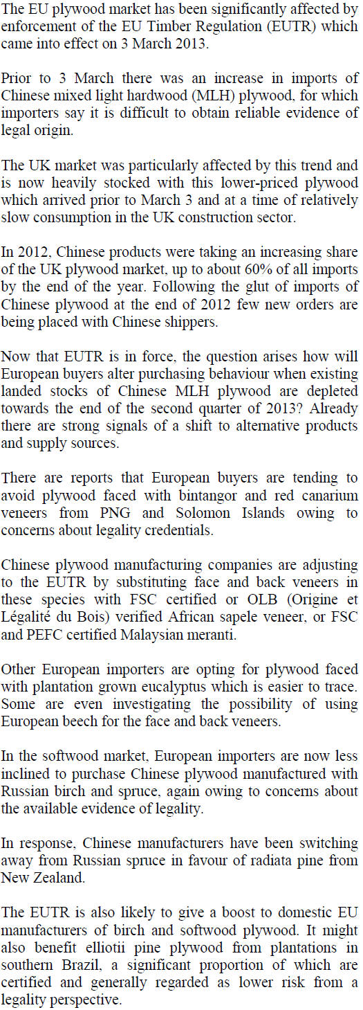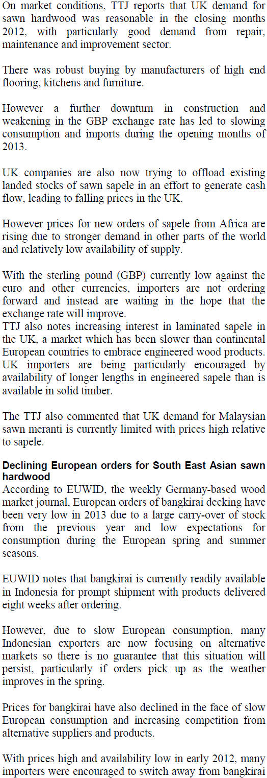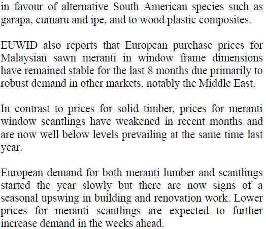 Source: ITTO' Tropical Timber Market Report |