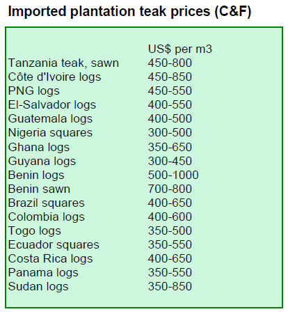 Substitution of teak with other durable tropical hardwoods continues because of the high price of Myanmar teak.