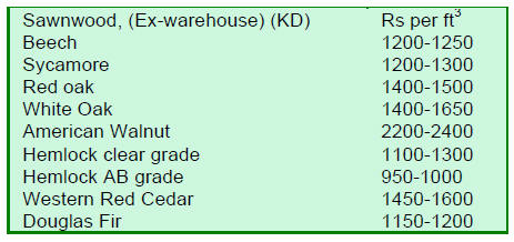 Prices for air dried sawnwood per cubic foot, ex-sawmill are shown below