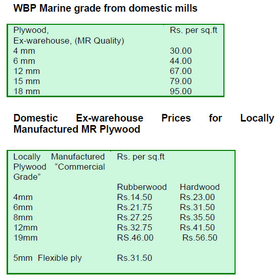 Plywood prices remain unchanged after the recent increases and are as shown below.