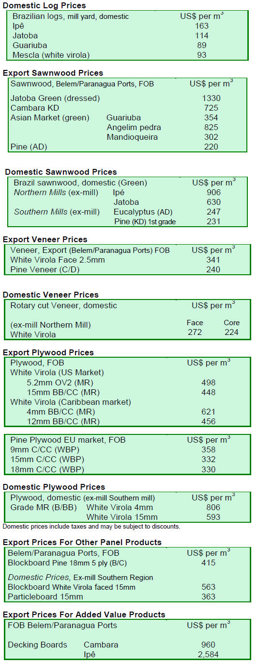Undressed Mora (select) sawnwood prices were encouraging, rising as high as US$672 per cubic metre FOB.