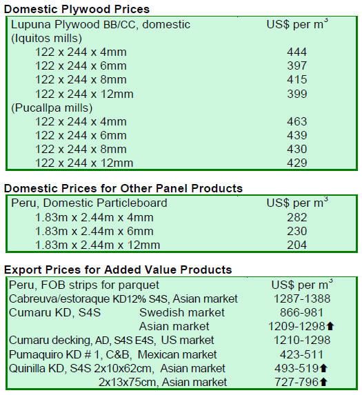 In contrast FOB prices for Dressed purpleheart remained unchanged at an average of US$1,102 per cubic metre.