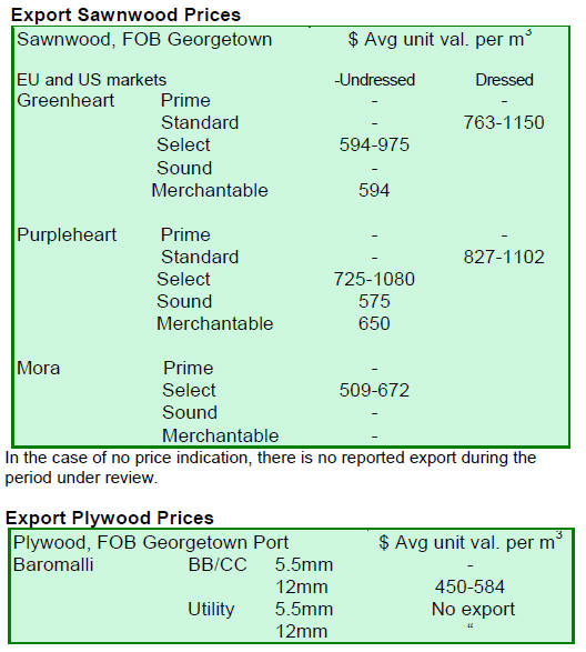 Some of Guyana¡¯s lesser known species were exported to destinations including Asia, the Caribbean, Europe and North America. Exports of logs and sawnwood attracted fairly good prices.