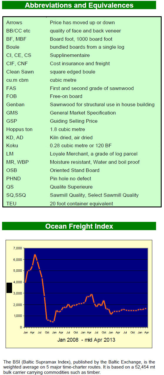 Buyers for the Chinese market are active but the volumes demanded are not yet back to levels normally seen during the spring months. Indian importers are also active in the log market but only for a very limited range of species.