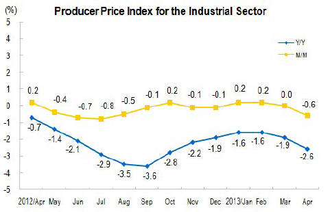 In April 2013, the Producer Price Index (PPI) for manufactured goods