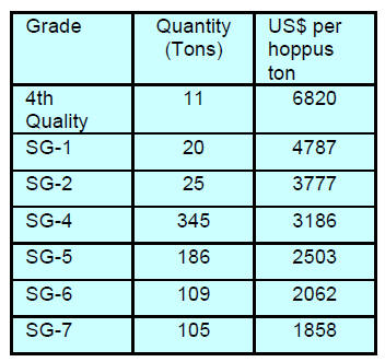 cubic metre FOB, while Merchantable Quality FOB prices held at US$636 per