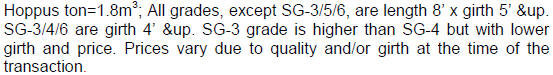 Standard Sawmill Quality logs attracted favourable top end prices of US$235
