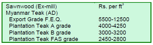 at top end FOB prices of US$205 per cubic metre. There were no exports of