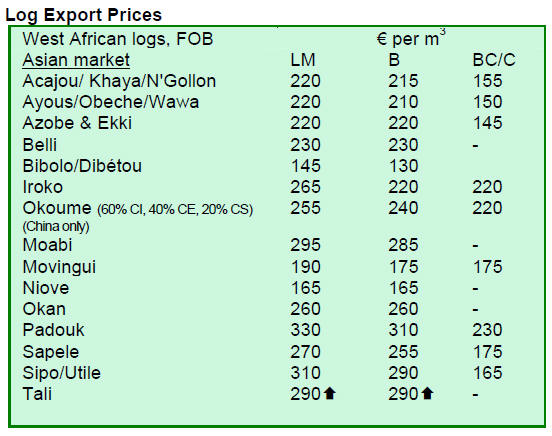 Roundwood (greenheart piles) secured good prices of US$ 599 per cubic metre