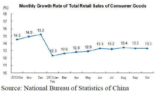 From January to October total retail sales of consumer