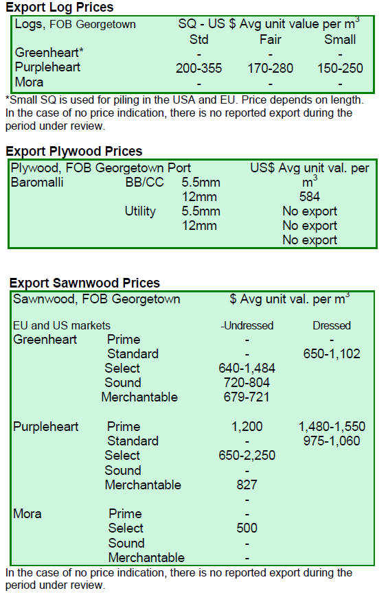 review. Undressed sawn greenheart attracted good prices