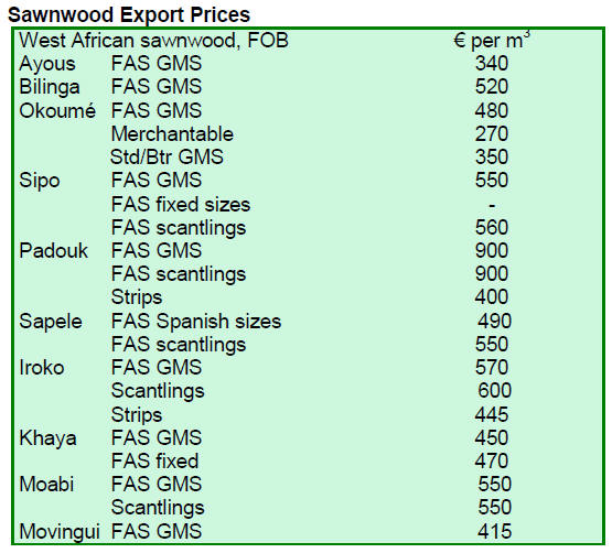sawnwood attracted significantly improved prices in