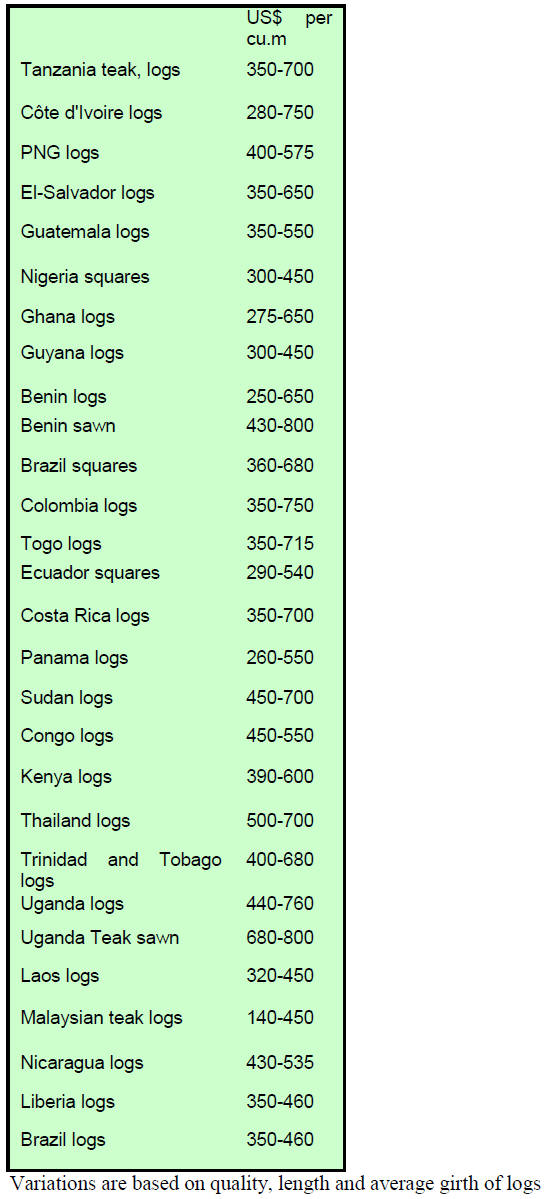 Source:ITTO'  Tropical Timber Market Report