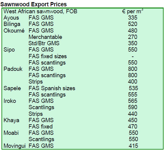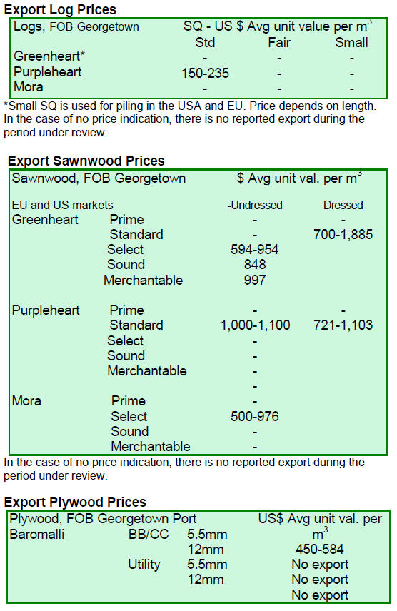 Dressed sawn greenheart export prices were favourable