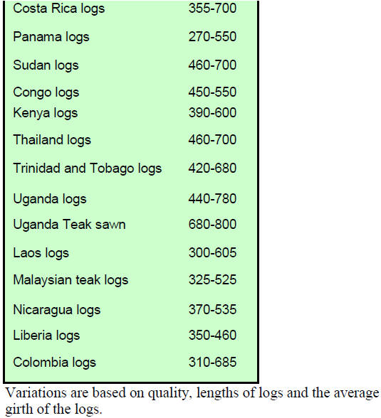 spp) US$130 to US$150 per cubic metre FOB and