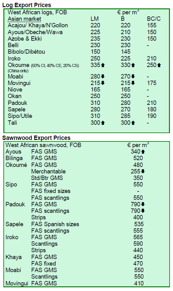 Undressed sawn greenheart prices were favourable with a