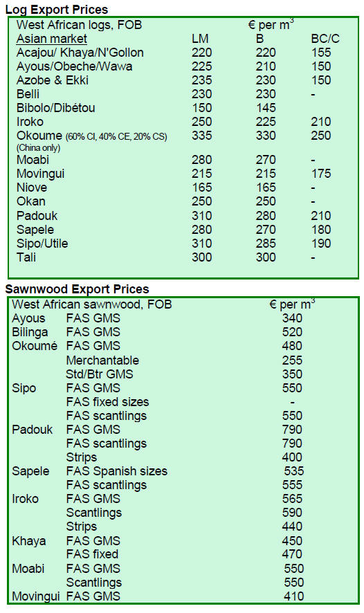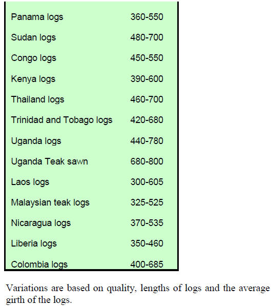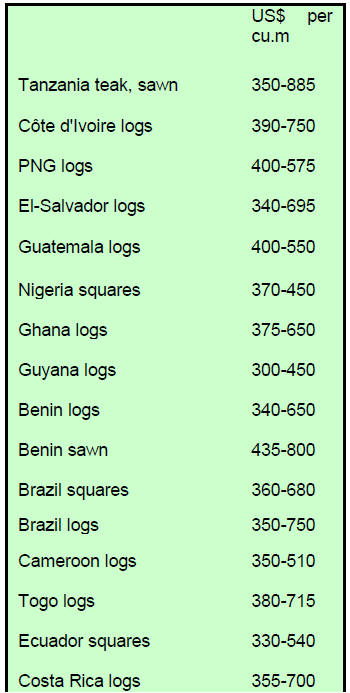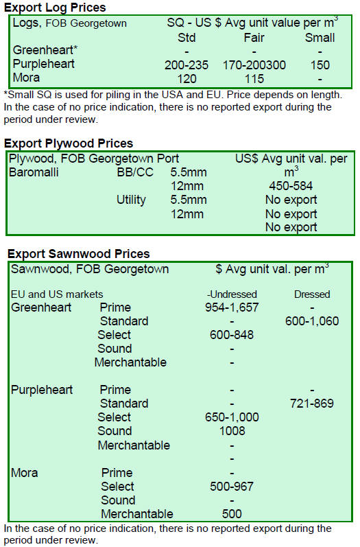 attractive for producers. Guyana‟s washiba (ipe) continued