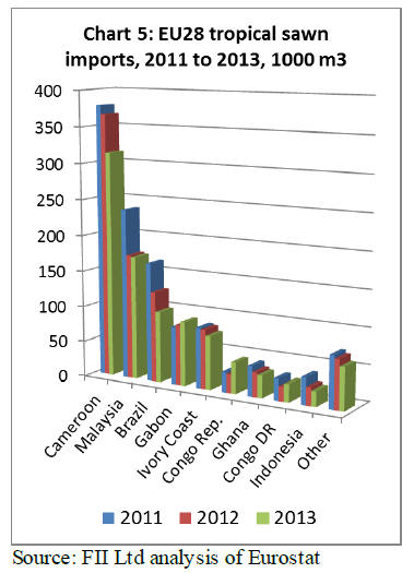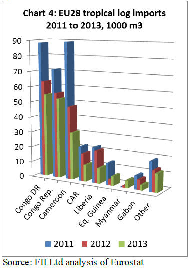 EU imports of tropical hardwood logs were 186,000 m3 in