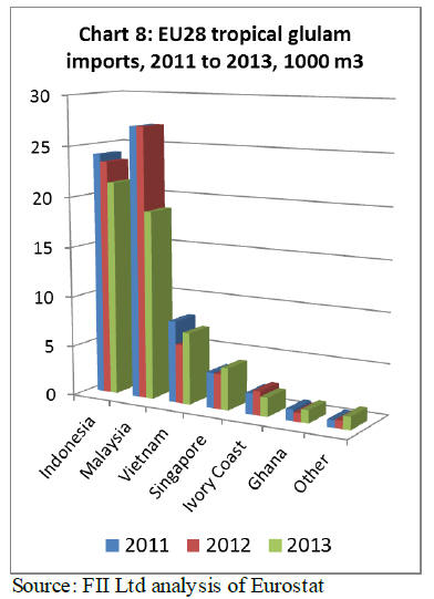 Indonesia declined 9% to 21,000 m3 in 2013. However,