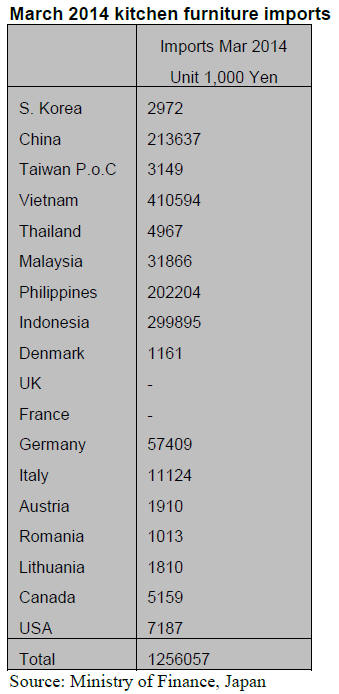 Japan‟s office kitchen and bedroom furniture imports from