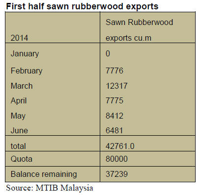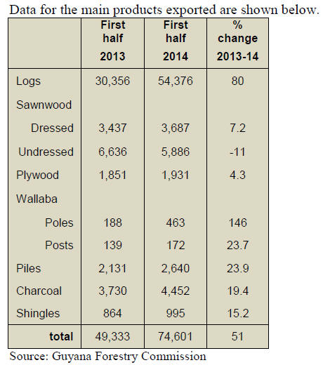 2013 to 160,200 cu.m in the first half of this year, a 9%