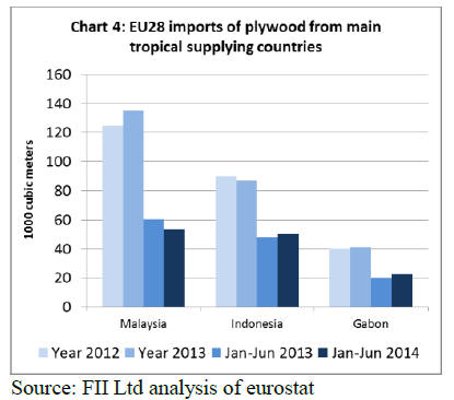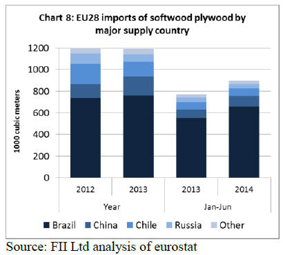 Imports from Brazil increased 19% to 657,000 m3 in the