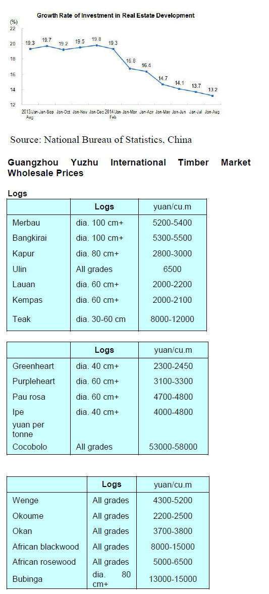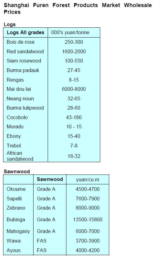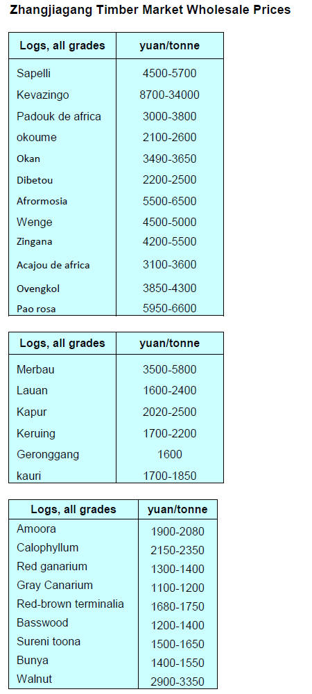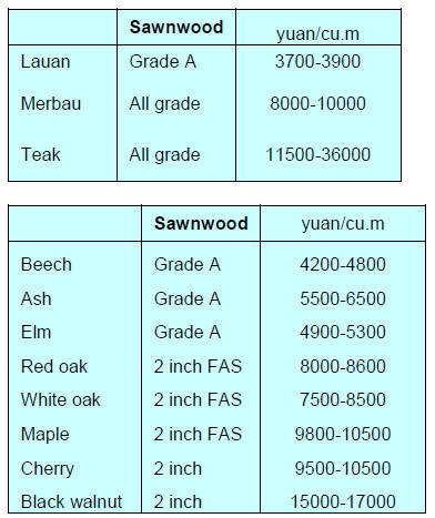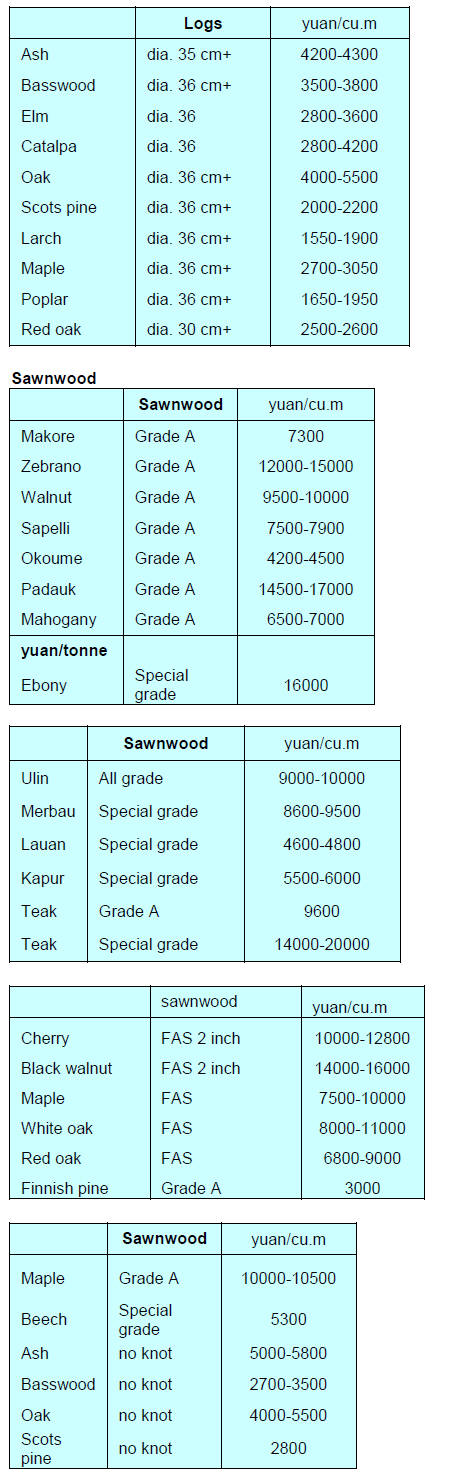 pine from Europe is down RMB60 per cubic metre.