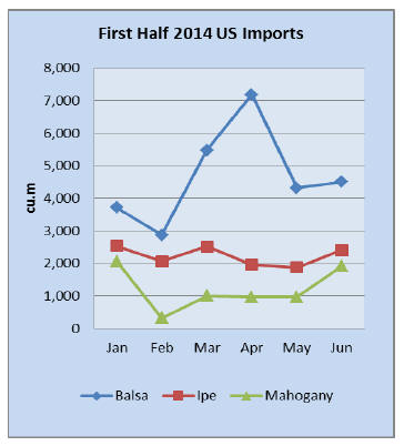 Ecuador‟s exports of balsa to the US were 4,980 cu.m, up
