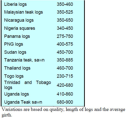 Source:ITTO'  Tropical Timber Market Report