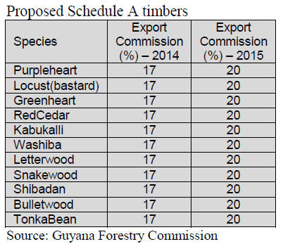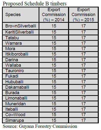 certain species exported as logs or squares. Changes in the