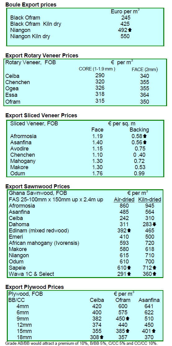 have been a few price increases for logs and sawnwood of