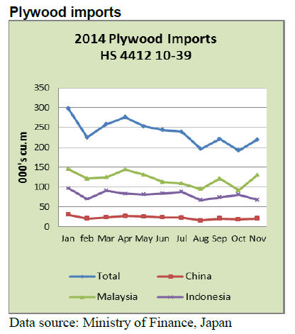 Japan‟s imports of plywood from Malaysia rose sharply in