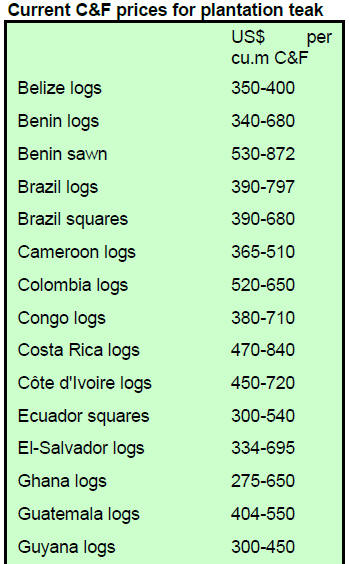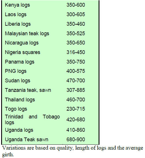 billets, poles, sliced veneer and air dry sawnwood in teak,