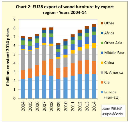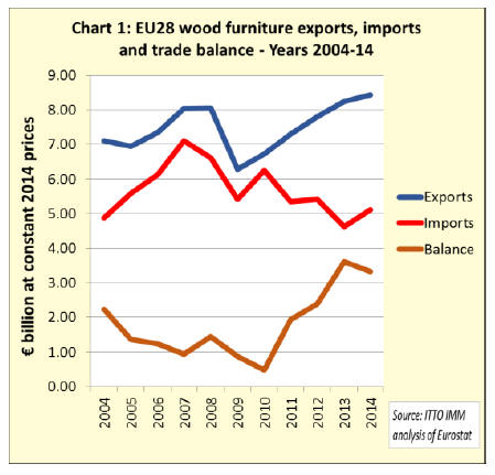 The EU 28‟s trade surplus in wooden furniture fell 8.2%