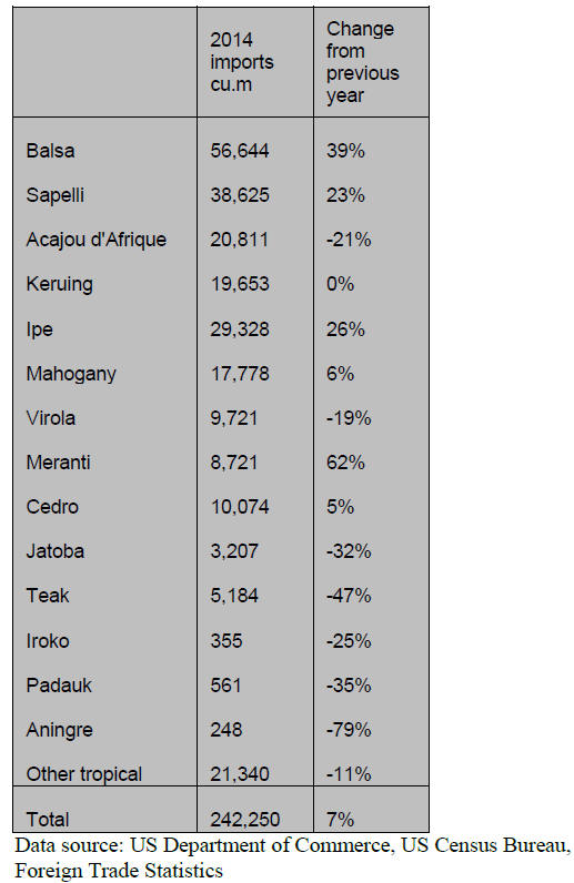 growth in 2014. The US imported 56,644 cu.m. of balsa,