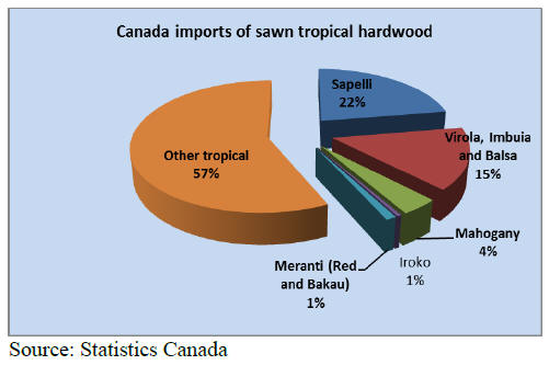 Imports of sapelli sawnwood increased by 23% in 2014 to