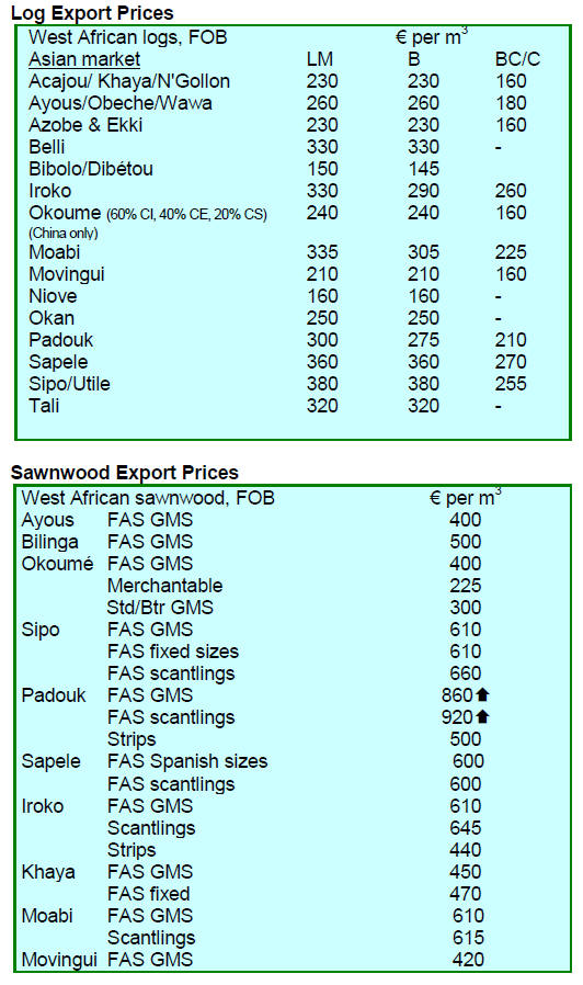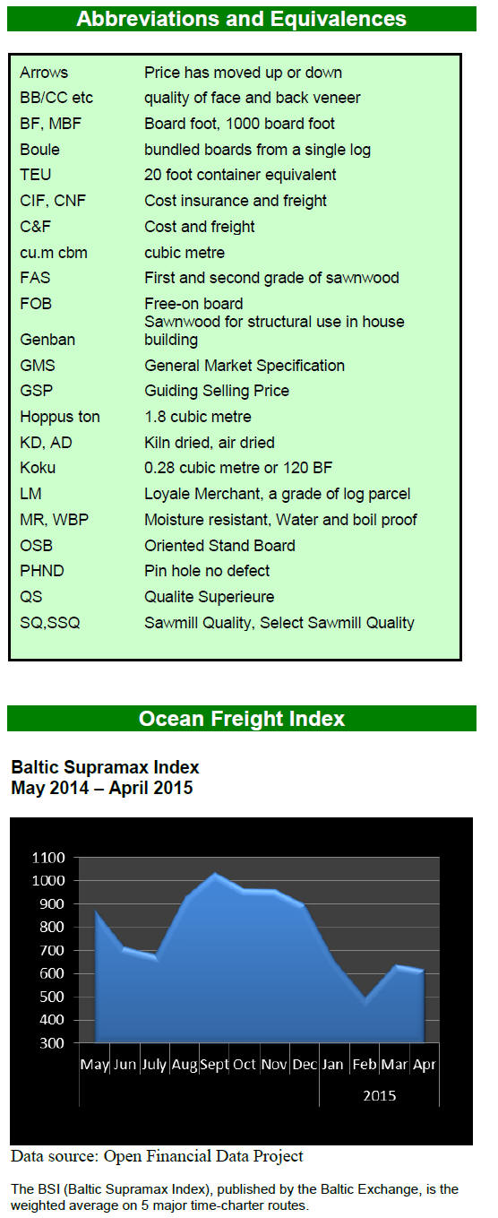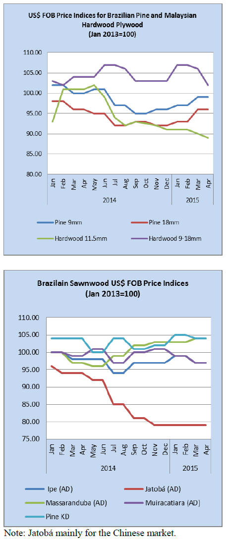 above, plywood exports fell in the first quarter, dropping