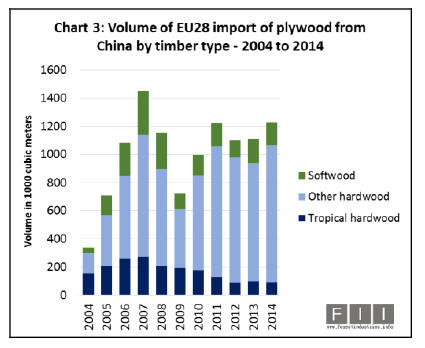 The increase in EU28 imports of Chinese plywood in 2014
