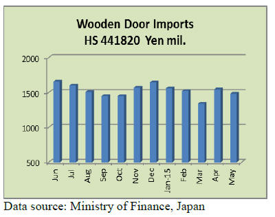 Japan’s May imports of wooden doors fell 4% from the