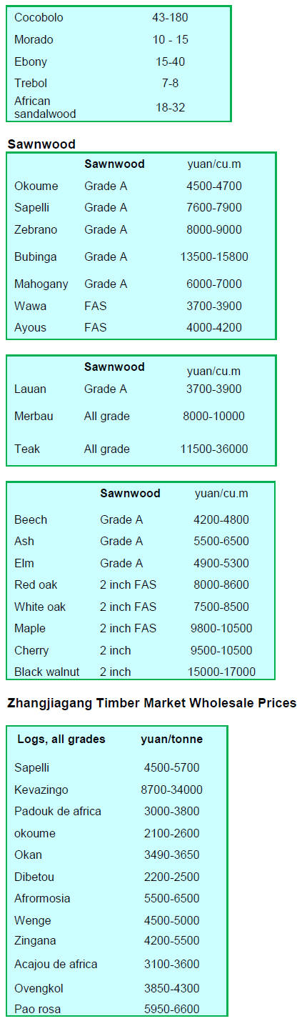 Timber imports from North America, Africa and Russia,