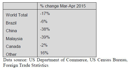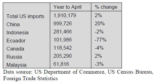 of a drop in Chinese shipments to107,532 cu.m. Year-todate