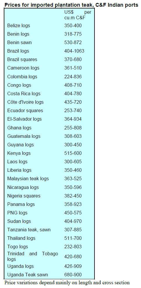Source:ITTO'  Tropical Timber Market Report