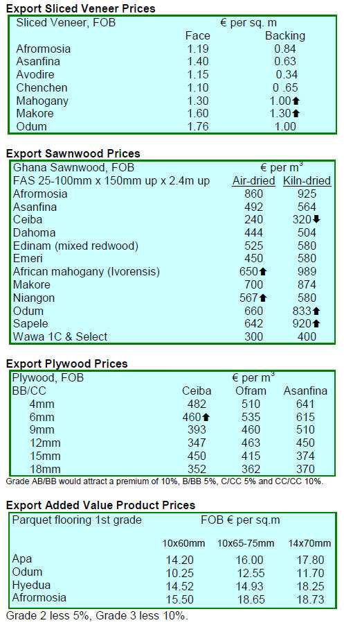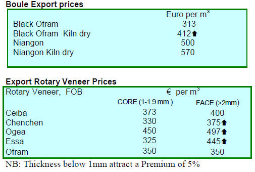 even sapele have declined and prices have eased.