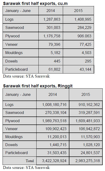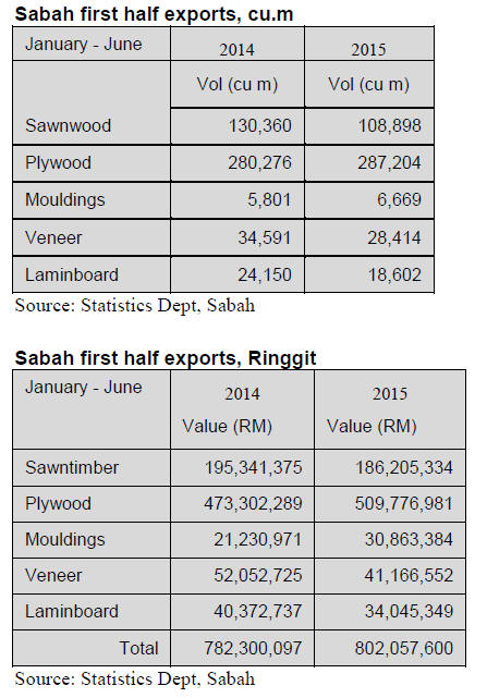 174,409 cu.m, a 21.5% rise on first half 2014 exports. First