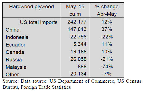 US imports of hardwood plywood grew 12% month-onmonth