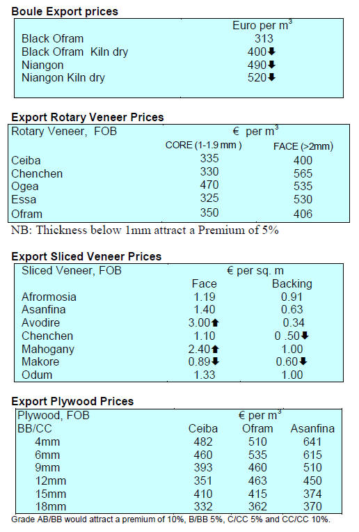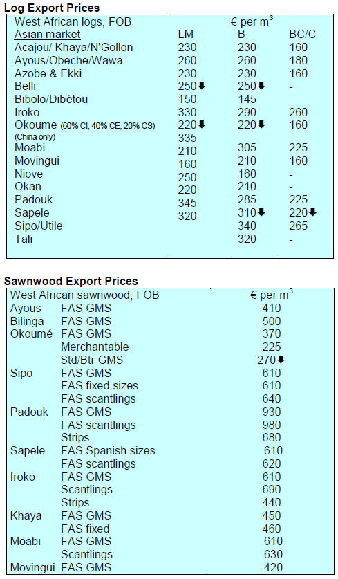 Prices for the majority of West African timbers have been