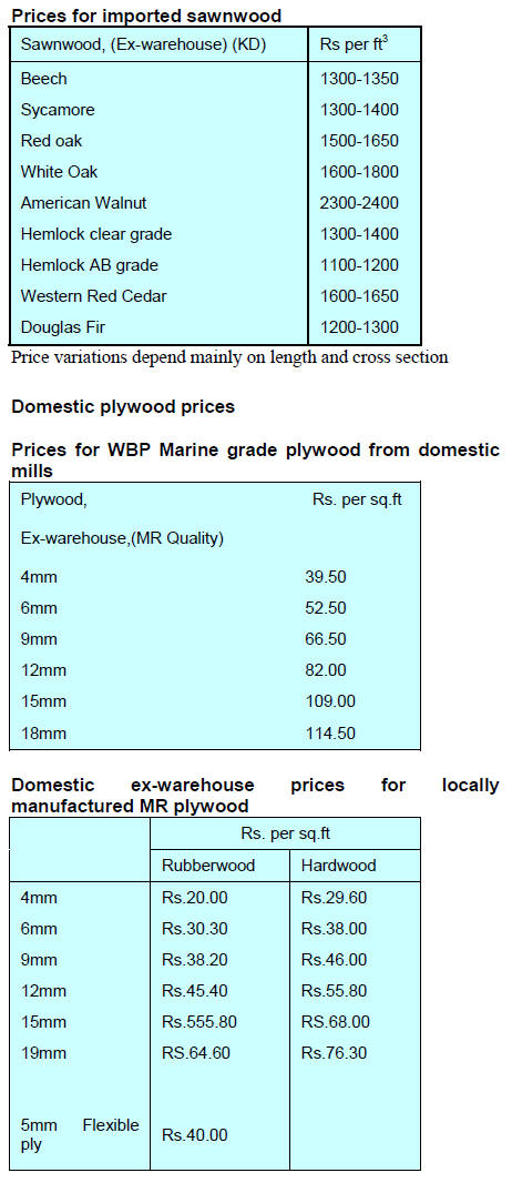 Taiwan (9mm and up) US$ 410/cu.m FOB