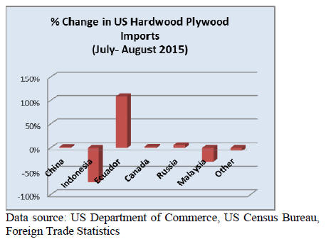 Plywood imports from Indonesia declined in August
