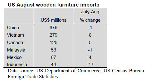 US wood furniture imports from China declined by 1% to