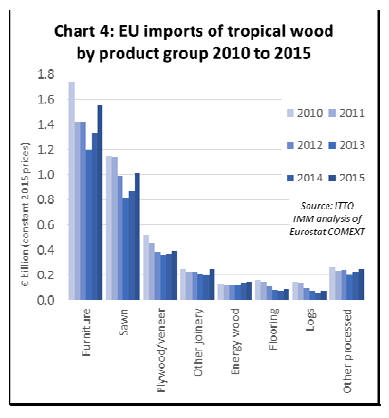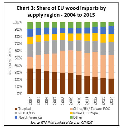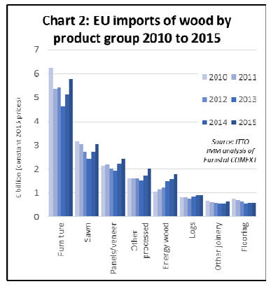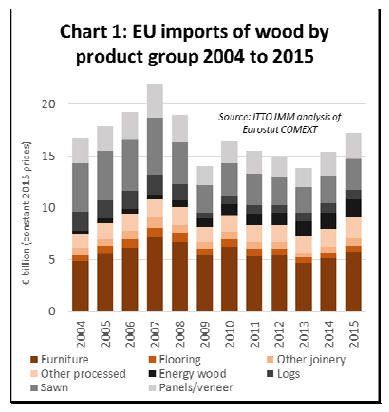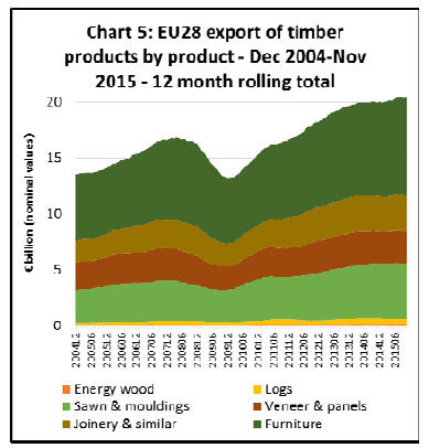 In 2015, the EU had a euro3 billion trade surplus in wood